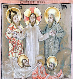 Mose und Elia kommen dazu – die bisherige Geschichte des Heils! Auch sie bringen Licht- und Feuererfahrungen mit: Mose sah den brennenden Dornbusch, Elia fuhr im Feuerwagen zum Himmel auf.