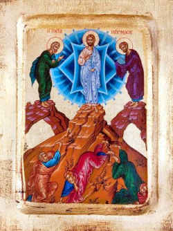 Die drei Jünger, die er mitnimmt, erleben auf dem Berg wunderbare Augenblicke: "Und er wurde verklärt vor ihnen, und sein Angesicht leuchtete wie die Sonne, und seine Kleider wurden