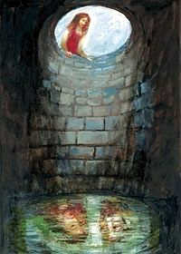 Der Maler Sieger Köder hat das in einem seiner Bilder sehr schön dargestellt. Ein tiefer Brunnen ist da zu sehen. Oben steht die Frau allein am Brunnenrand und schaut hinab. Aber unten, im