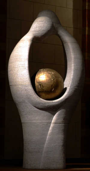 sich. Und in dieser Liebe entsteht ein Zwischenraum, der Raum der Liebe, der Raum des Geistes, in dem die Erde geborgen ist. Der ganze Globus. Und wir auf ihm.