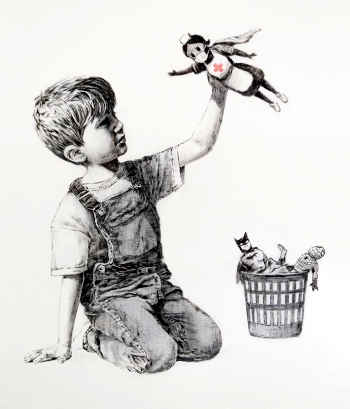 In England gibt es einen Künstler namens Banksy, der ist wie ein Phantom. Niemand weiß, wer sich hinter diesem Namen verbirgt. Aber seine Bilder und Graffiti sind allgegenwärtig,