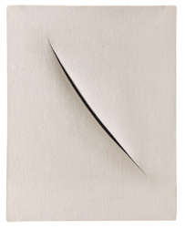 in die Oberfläche des Lebens machen, um zu sehen, was dahinterliegt. Eines von Fontanas Werken heißt attesa – Erwartung, Advent.