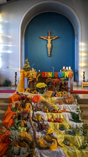zu danken. Auch dieser Sonntag, dieser Erntedankgottesdienst ist so ein kleiner Anstoß, der mich erinnert: "Na du, denkst du noch ans Danken?" Und ich, der ich mit Ernte direkt nichts zu tun habe, nie einen Apfel vom Baum pflücke, nie Trauben keltere, nie auch nur einen Halm Roggen mähe,