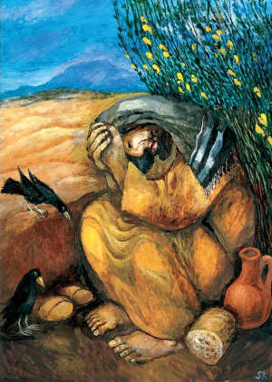 Und Elija, der unverstandene Prophet, flieht. Weg von seinem Volk, weg von der gefährlichen Königin. Flieht in die Wüste. Da ist er nun ganz allein, voller Selbstmitleid, voller Selbstzweifel. Und ohne