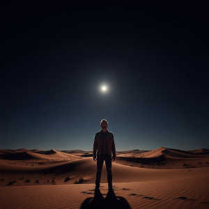 Ich habe ein Gemälde vor Augen: ein weiter leerer Raum, die Wüste. Ein hoher Himmel darüber, nachtschwarz. Und ganz unten ein kleiner Mensch. Er ist losgezogen in diesen weiten Raum hinein. Gibt es einen