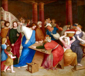 Dabei rief er laut: „Was habt ihr aus dem Tempel gemacht? Einen Marktplatz, eine Räuberhöhle habt ihr jetzt!“ Geschäftemachen an heiliger Stätte – das prangert Jesus an. Aber damit schafft man sich